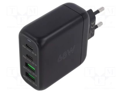 Spínaný síťový zásuvkový napájecí zdroj GOOBAY o výkonu 68 W s technologií GaN. Je vybaven výstupy USB-A a USB-C Power Delivery (PD 30) s podporou standardu Quick Charge. Nabízí...