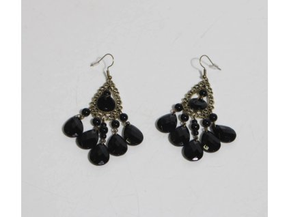 Tyto vintage náušnice mají design inspirovaný krajkou a jsou zdobené černými korálky a krystaly ve tvaru slzy. Jsou vyrobené ze zinkové slitiny.