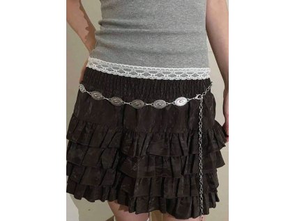 Řetězový opasek na pas je určený pro ženy a má délku 110 cm a šířku 2 cm. Je vyroben z kovové slitiny.