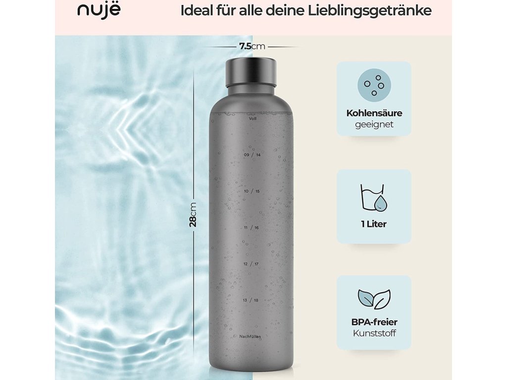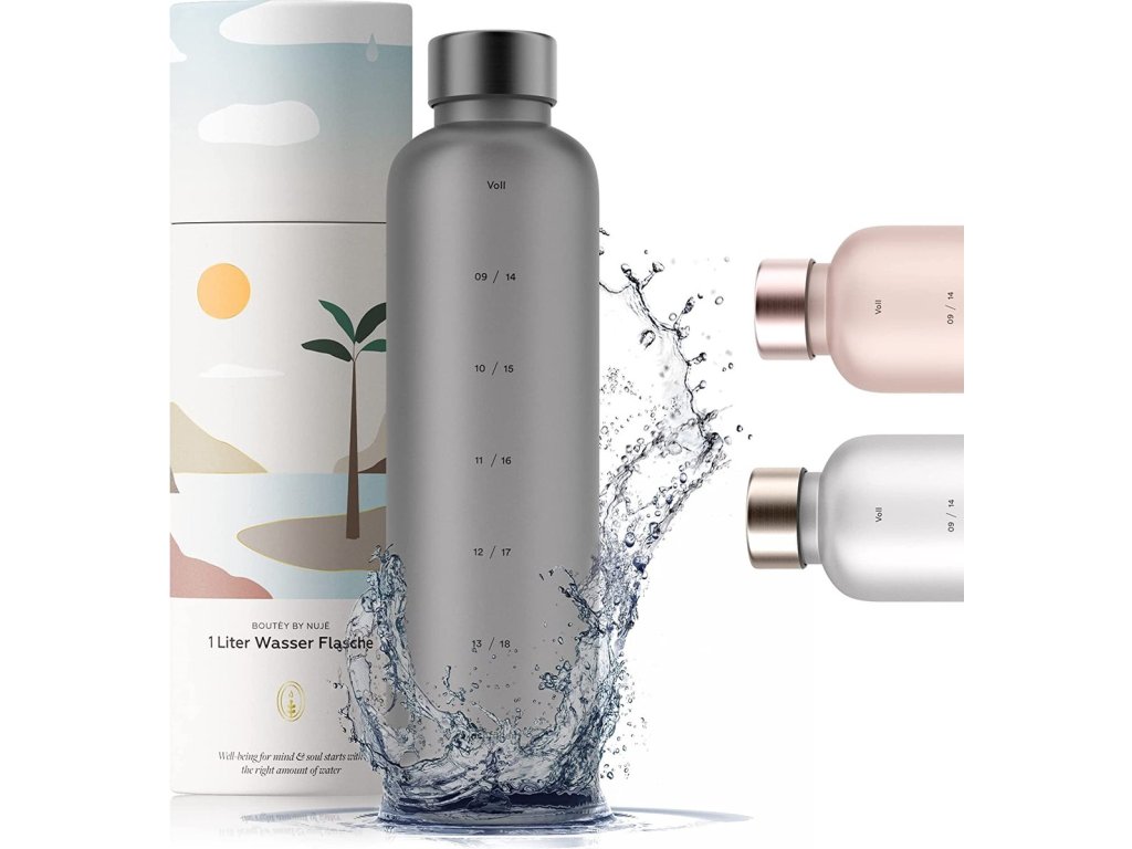 Udržujte optimální hydrataci po celý den s naší 1litrovou lahví na vodu s praktickými časovými značkami! Tato stylová tmavě šedá lahev vám pomůže pravidelně doplňovat tekutiny, ať už jste ve fitku, na procházce, nebo při jiných aktivitách.