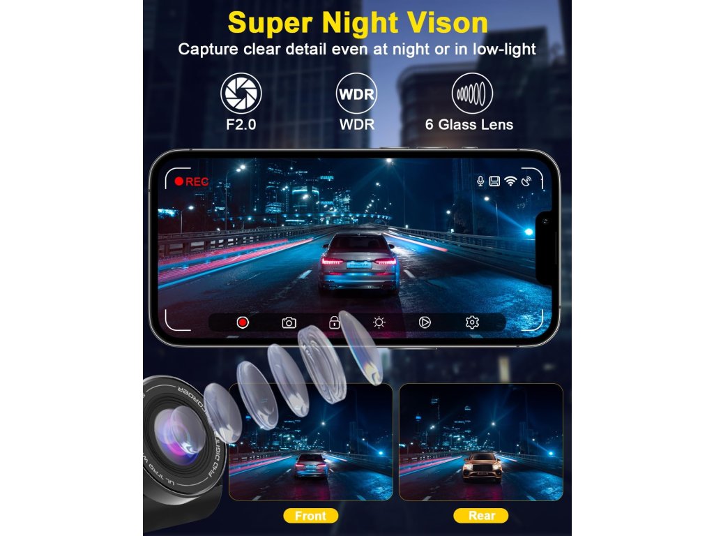 S touhle kamerou do auta ti už nic neunikne! Má dvě kamery – jednu dopředu, která natáčí ve super vysokém rozlišení 4K, a jednu dozadu, která má Full HD. Takže na videích krásně uvidíš značky i čísla aut, ať už jedeš kamkoliv.