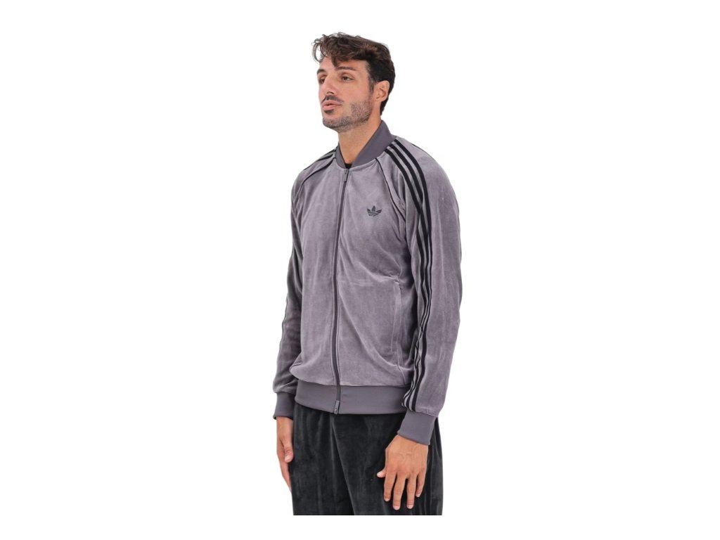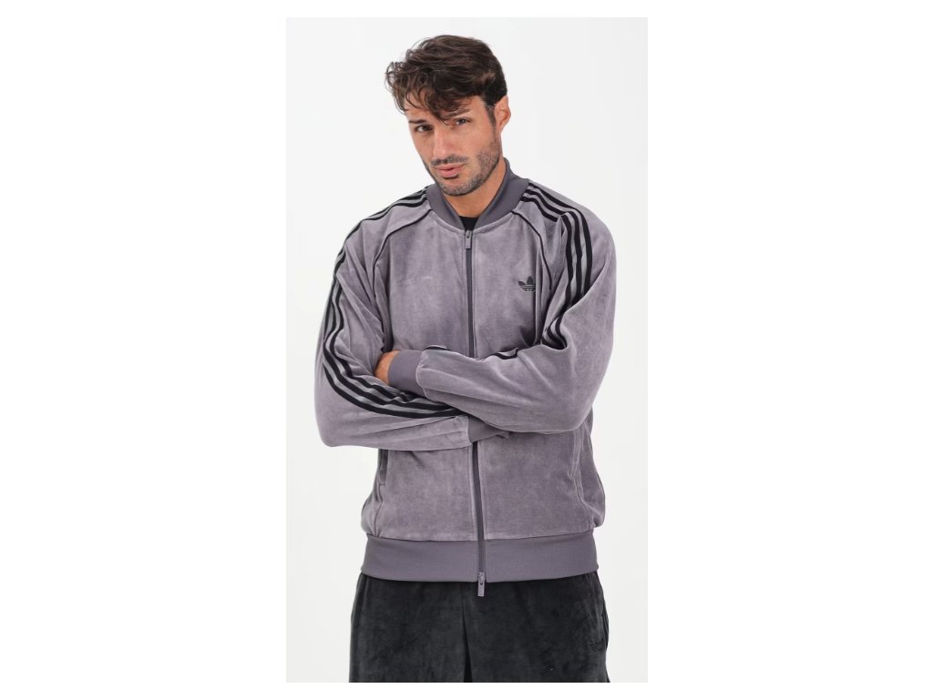 Adidas Originals Pánská velurová mikina na zip Adicolor šedá M