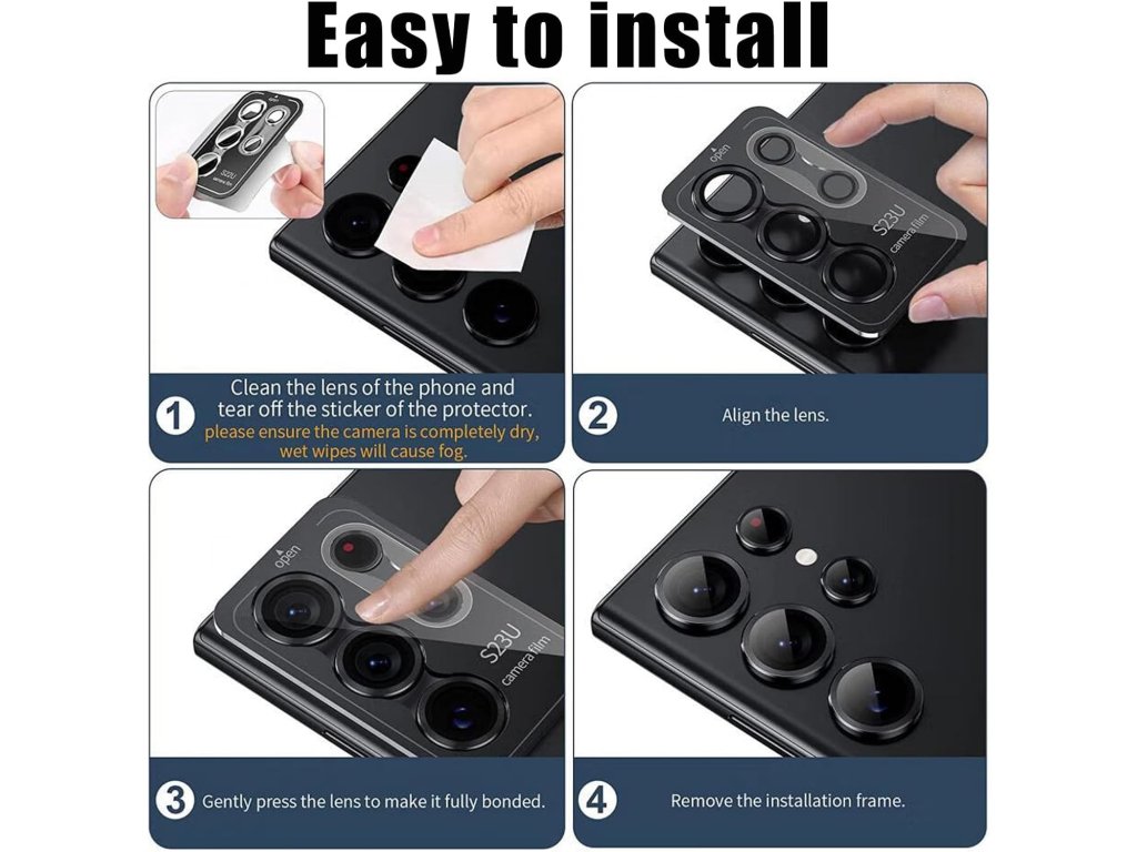 Povrch skla prošel speciální úpravou proti otiskům prstů a mastnotě, takže čočky zůstávají čisté i při běžné manipulaci. Instalace je díky nano-elektrostatické technologii automatické adsorpce velmi jednoduchá – stačí přiložit a sklo se samo pevně přichytí bez vzniku vzduchových bublin. Precizní výřezy zaručují, že ochrana těsně přiléhá k hranám čoček a je plně kompatibilní s většinou ochranných krytů.