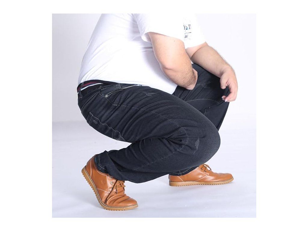 AHMXYG pánské volné džíny High Waist Velikost 7XL – černé