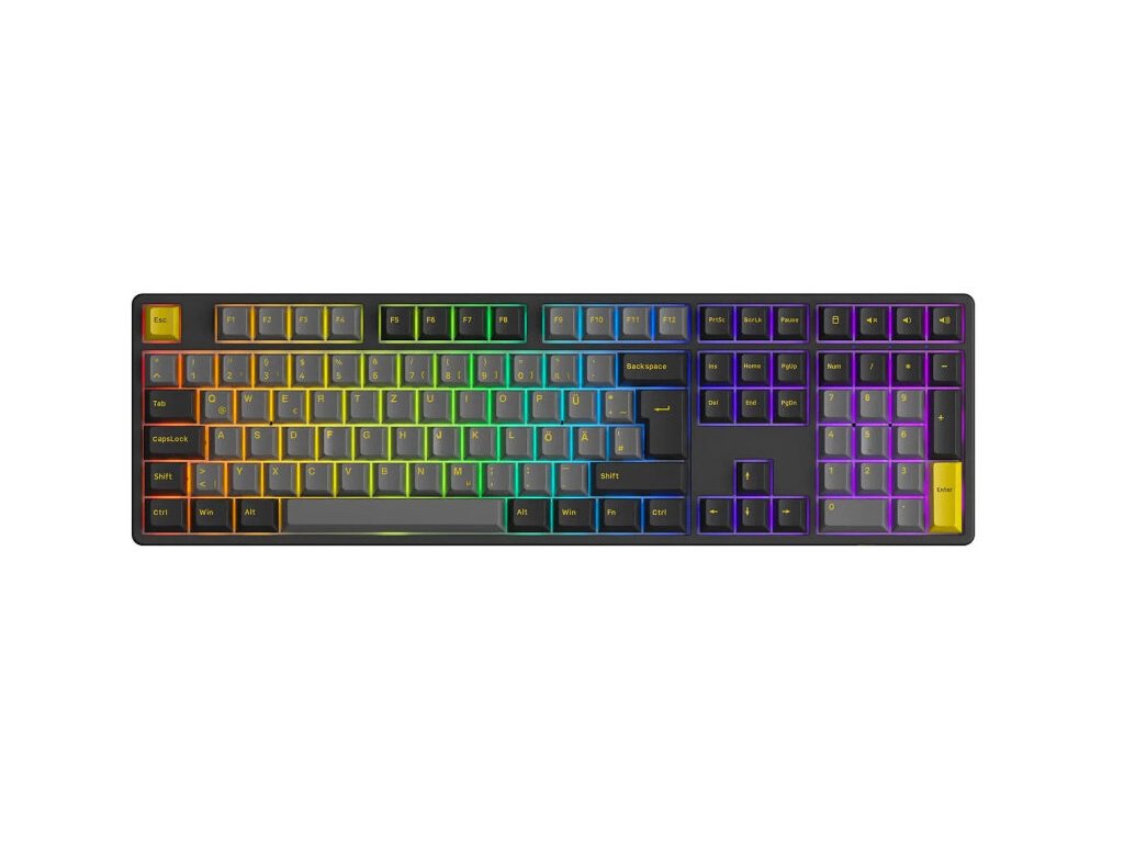Jako hardwarový nadšenec budete s herní klávesnicí AKKO Black & Gold 5108B Plus spokojeni. Tato klávesnice se nemusí před ničím skrývat, ale je prezentována v plné velikosti , která vám nabízí všechny funkce bez jakýchkoli kompromisů. Máte přístup k numerické klávesnici, která je užitečná zejména pro kancelářskou práci a rychlé zadávání čísel. Funkční klávesy od F1 do F12 jsou plně přítomné a nabízejí vám rychlý přístup k důležitým zkratkám.