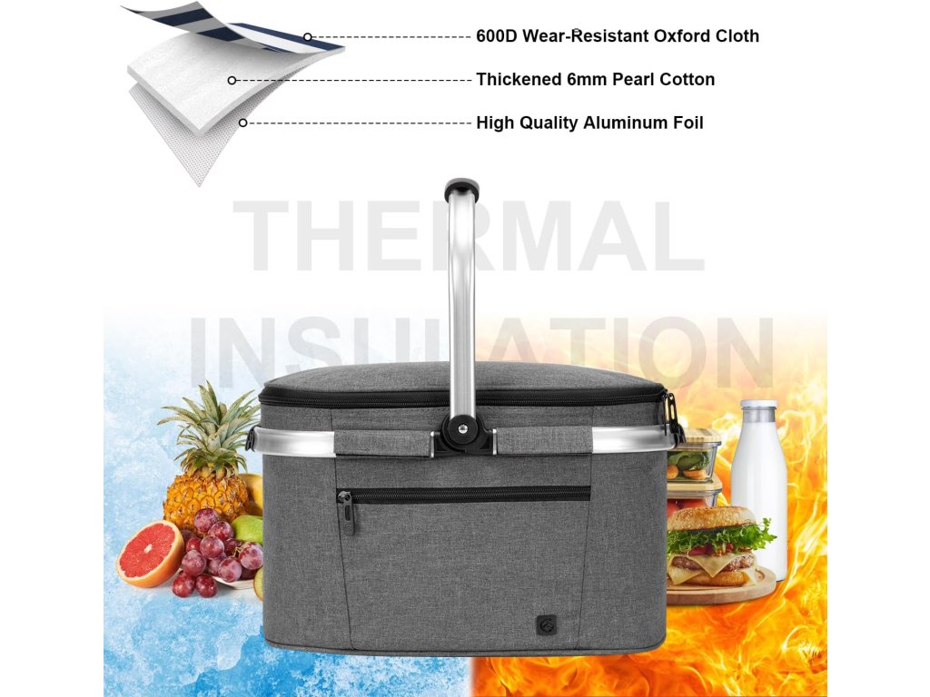 S tímto termoizolačním košem si užijete každý výlet do přírody, venkovní koncert nebo sportovní událost. Je vyroben s třívrstvou izolační konstrukcí, která se skládá z odolného vnějšího materiálu 600D Oxford, 8mm perleťové bavlny a hliníkové fólie.