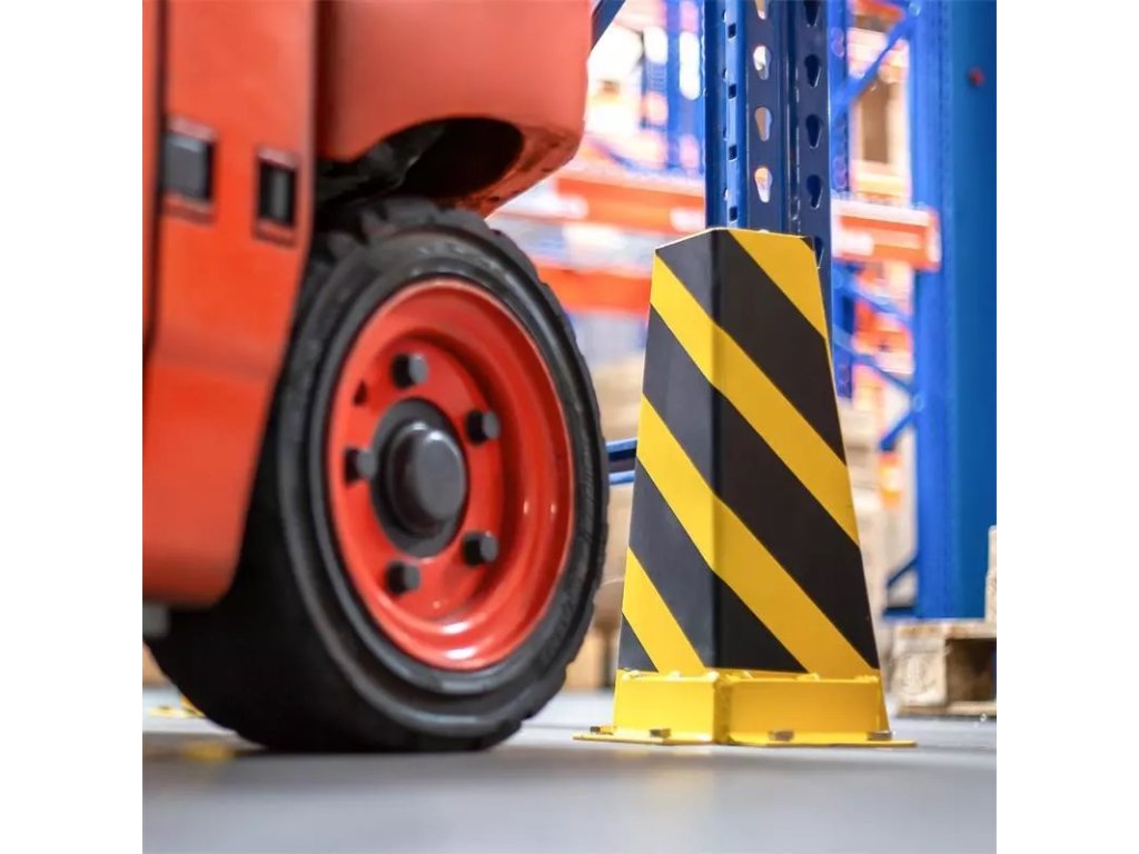 Rohová ochrana proti nárazu STOPPO v signální žluto černé barvě zvyšuje bezpečnost ve skladech a výrobních prostorech. Chrání paletové regály a stěny před poškozením způsobeným manipulační technikou. Ochrana má robusní ocelovou konstrukci s 90° úhlem pro pevné uchycení k podlaze a práškový lak pro silnou ochranu proti korozi.