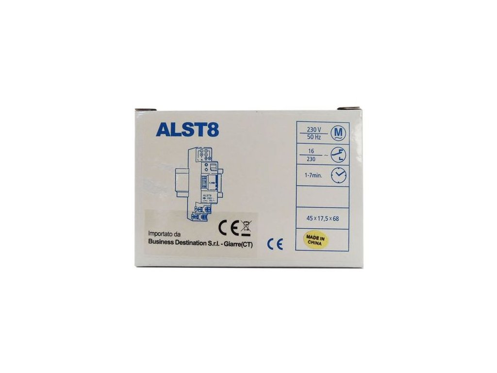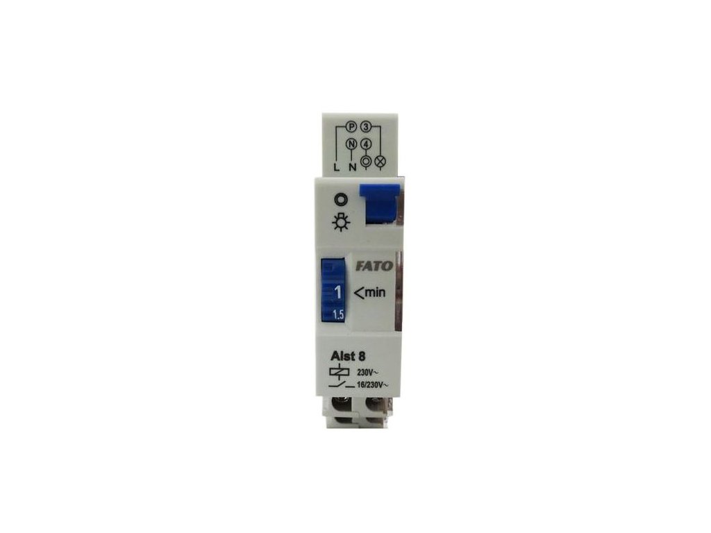 ALST8 FATO Elektronický časový spínač s maximální spínací kapacitou 16 A a napájením 230 V AC. Umožňuje nastavení času od 1 do 7 minut a je kompatibilní s 3- nebo 4vodičovým zapojením. Určeno pro montáž na DIN lištu, ideální pro osvětlení schodišť a chodeb. Pracuje v teplotách od -20°C do +50°C.