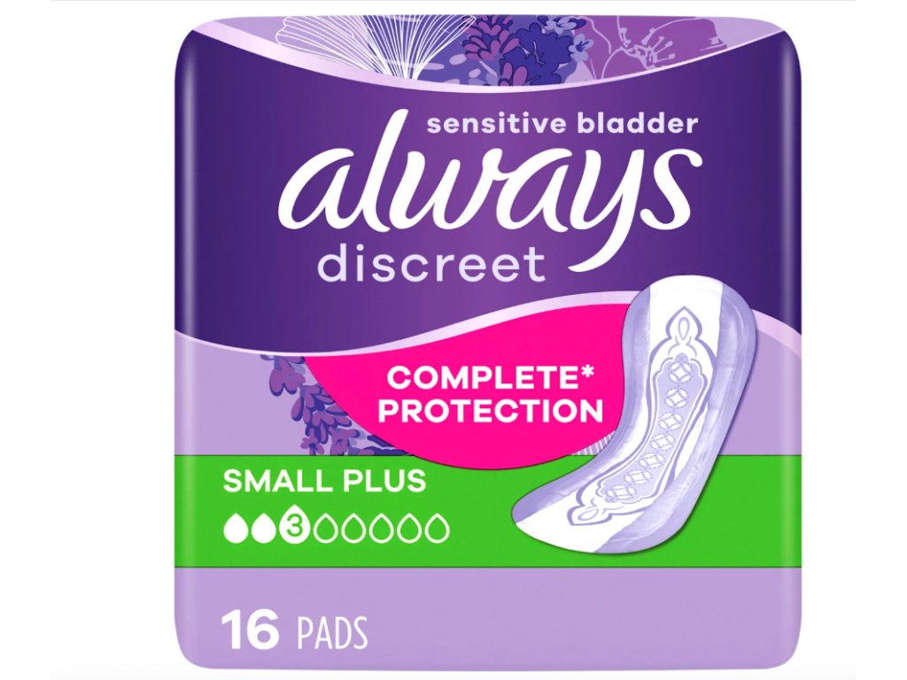 nkontinenční vložky always discreet Small Plus poskytují diskrétní ochranu při lehké inkontinenci. Tekutinu rychle proměňují v gel, který ji bezpečně uzamkne uvnitř.