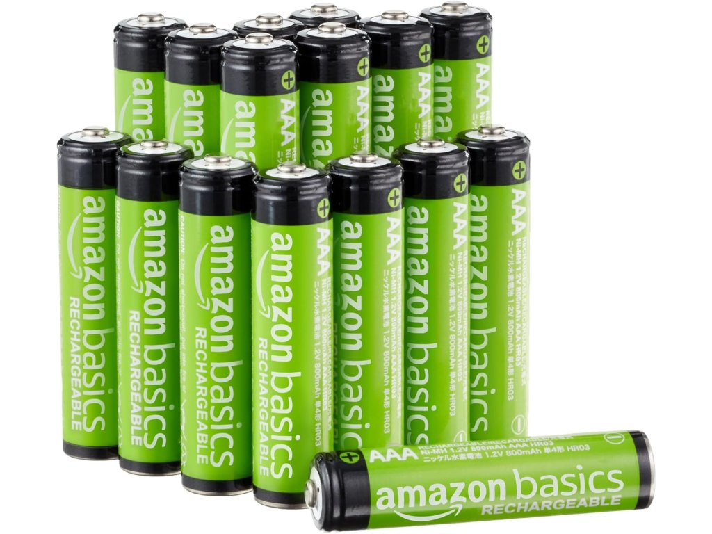 Amazon Basics nabízí balení 16 dobíjecích NiMH AAA baterií s kapacitou 800 mAh, které jsou ideální pro digitální fotoaparáty, dálkové ovladače a hračky. Baterie lze dobít až 1000krát a udržují si 80 % kapacity po dobu 24 měsíců.
