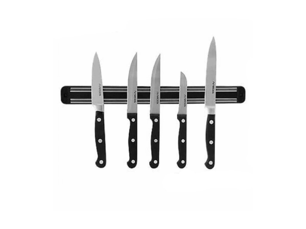 Efektivní a bezpečné uložení: Silný magnet spolehlivě udrží nože na místě, čímž zajišťuje jejich bezpečné uložení a zároveň chrání ostří před poškozením, které může nastat při skladování v zásuvkách.