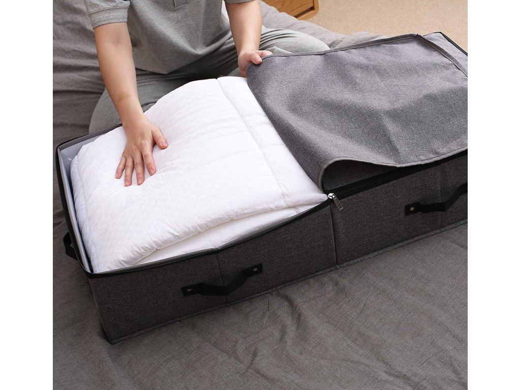 AMJ-XL úložný box, pod postel, skládací, šedý, s víkem