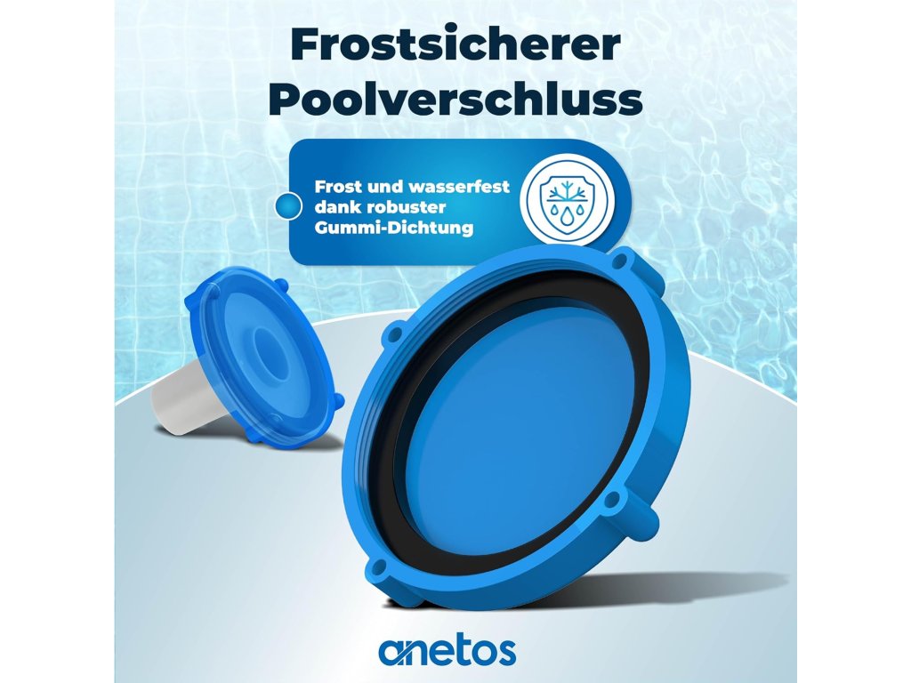 Bezpečné zazimování: Uzavírací špunty jsou mrazuvzdorné a 100% nepropustné, čímž účinně chrání potrubí bazénu před poškozením způsobeným zimní vodou.