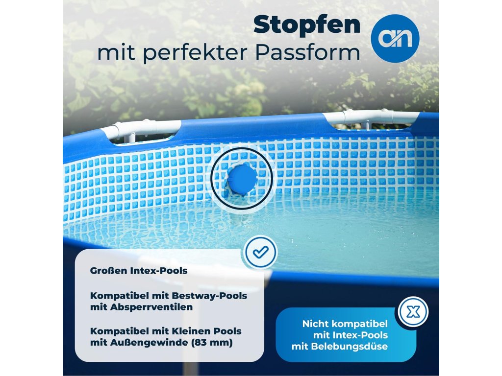 Uzávěry nepasují na bazény Intex s provzdušňovací tryskou. U těchto bazénů lze alternativně uzavřít pouze jednu stranu (jednu trysku) pomocí tohoto produktu.