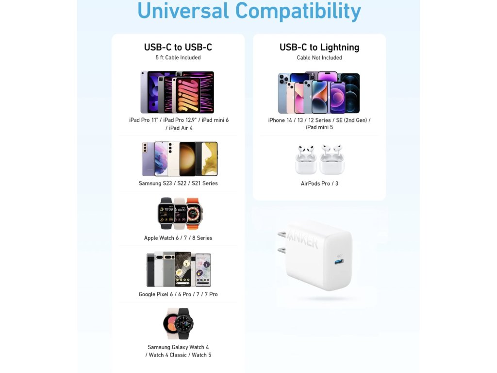 Anker 20W USB-C nástěnná nabíječka, bílá