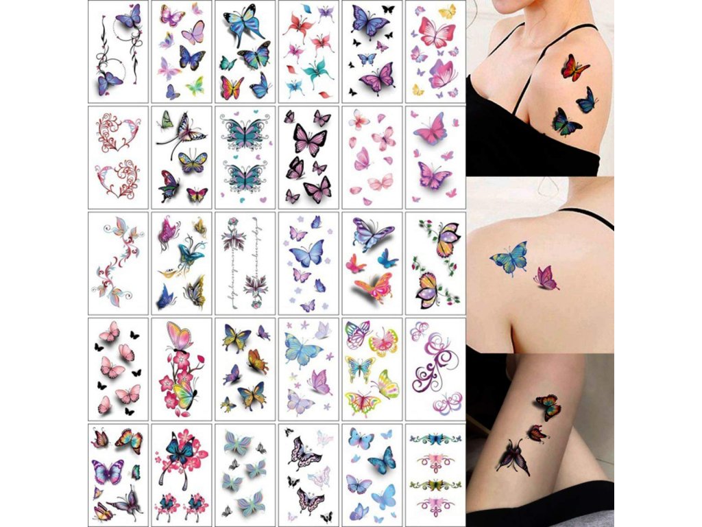 S touto sadou se můžete vyzdobit různými motivy květin a motýlů. Tetování můžete nalepit na jakoukoli část těla, jako jsou ruce, ramena, záda, stehna nebo pas.