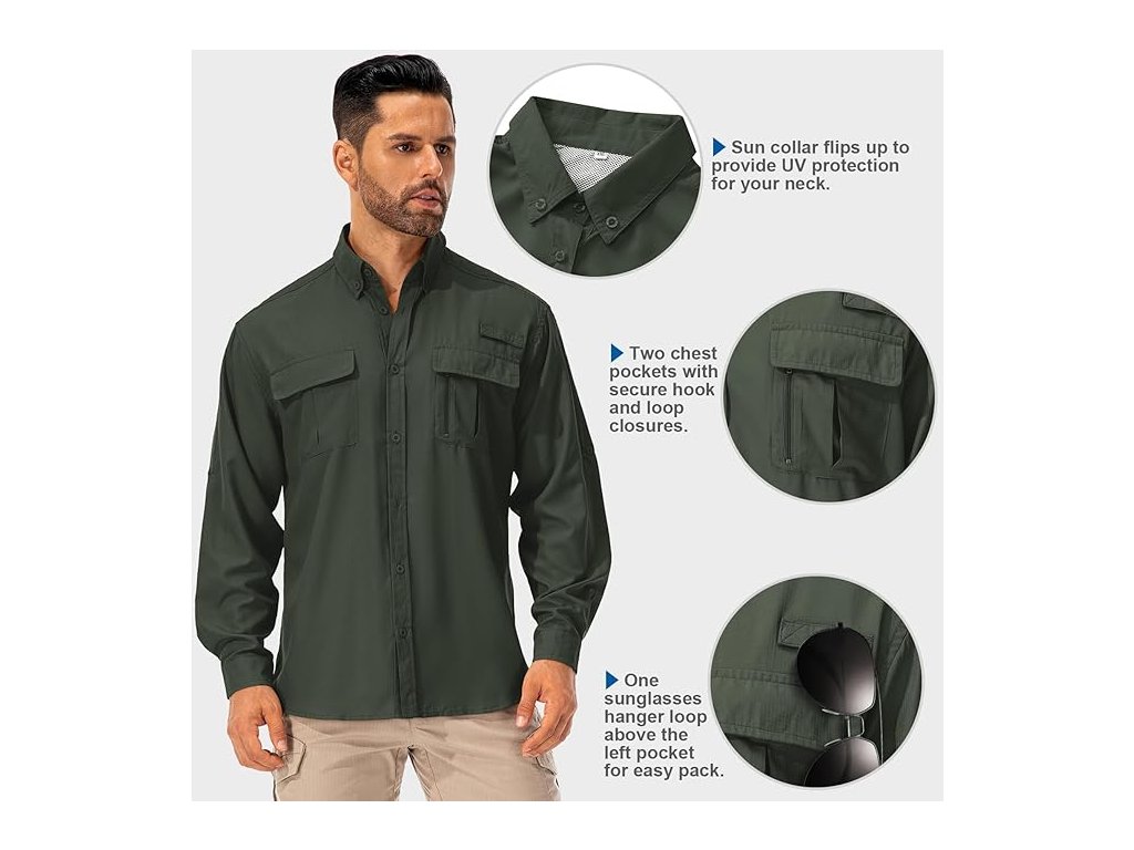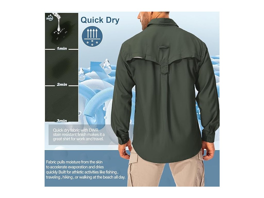 Asfixiado pánská outdoorová safari košile UPF50+ – rychleschnoucí turistická košile Army Green (vel. M)