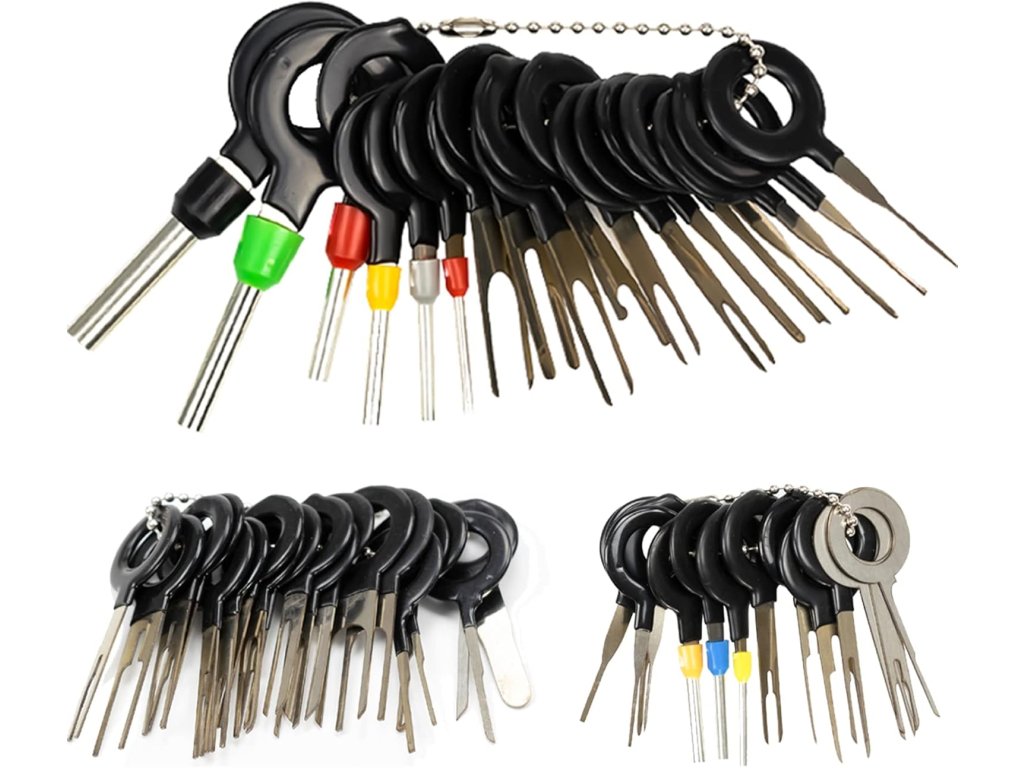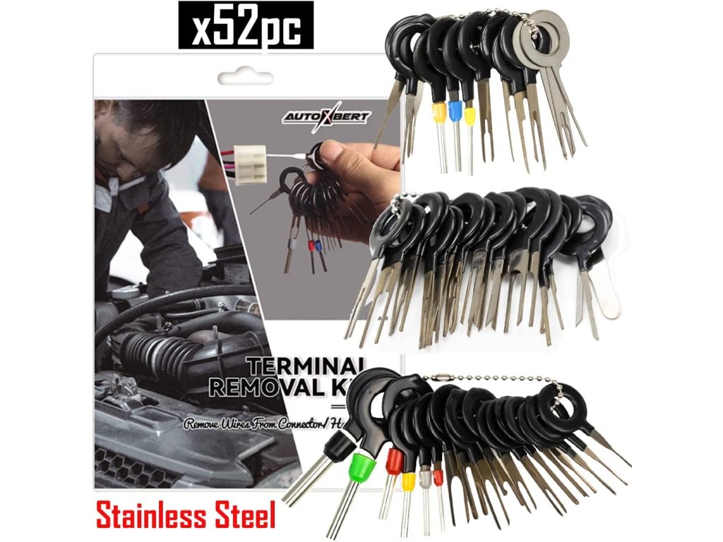 Sada nástrojů AUTOXBERT obsahuje 52 kusů různých vysoce kvalitních nástrojů z nerezové oceli pro snadnou a bezpečnou demontáž terminálových vodičů z konektorů kabelových svazků bez poškození. Tato sada je ideální pro automobilové opravy, motocykly, kabelové svazky, domácí spotřebiče a další elektronická zařízení. Ušetřete čas a námahu s tímto lehkým a kompaktním setem, který lze rozdělit pro použití na různých místech.