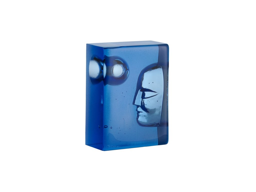 Bertil Vallien Azur Moon - unikátní skleněná socha, ručně tvořená, šířka 130 mm, výška 150 mm.
