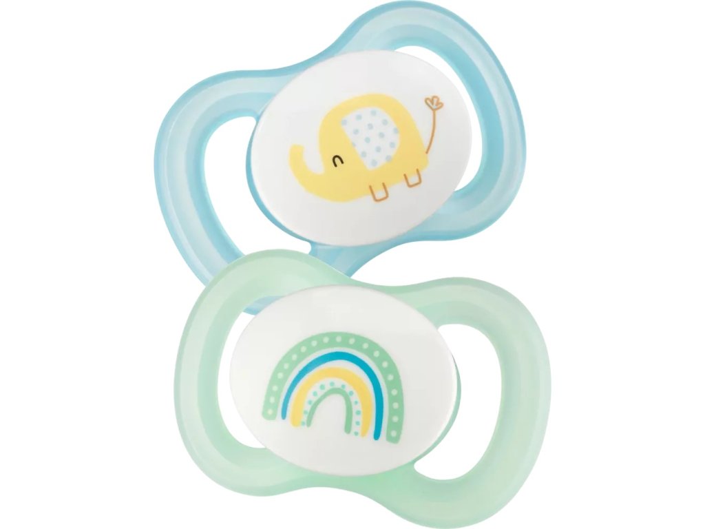 Speciálně pro novorozence: Dudlíky babylove slon a duha ve velikosti 0 jsou speciálně vyvinuty pro novorozence. Jejich extra malá a lehká velikost se dokonale hodí k drobným obličejíčkům miminek.