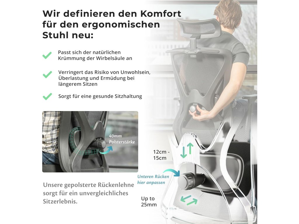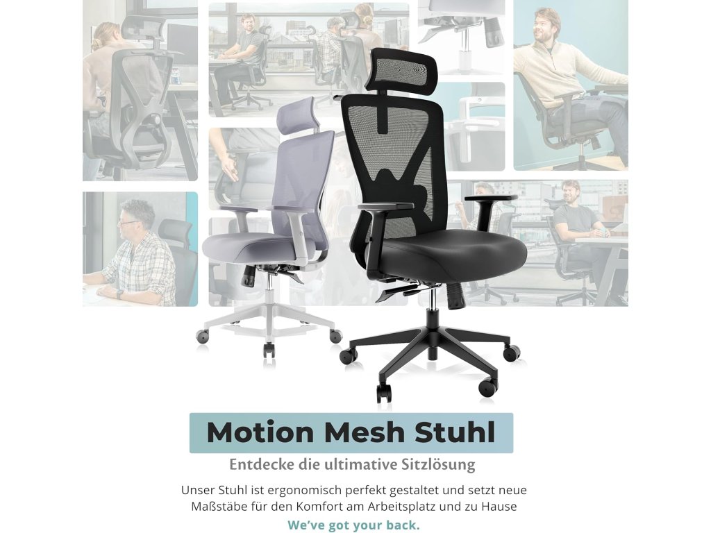 Backerz ergonomická kancelářská židle s nosností 150 kg (Černá)