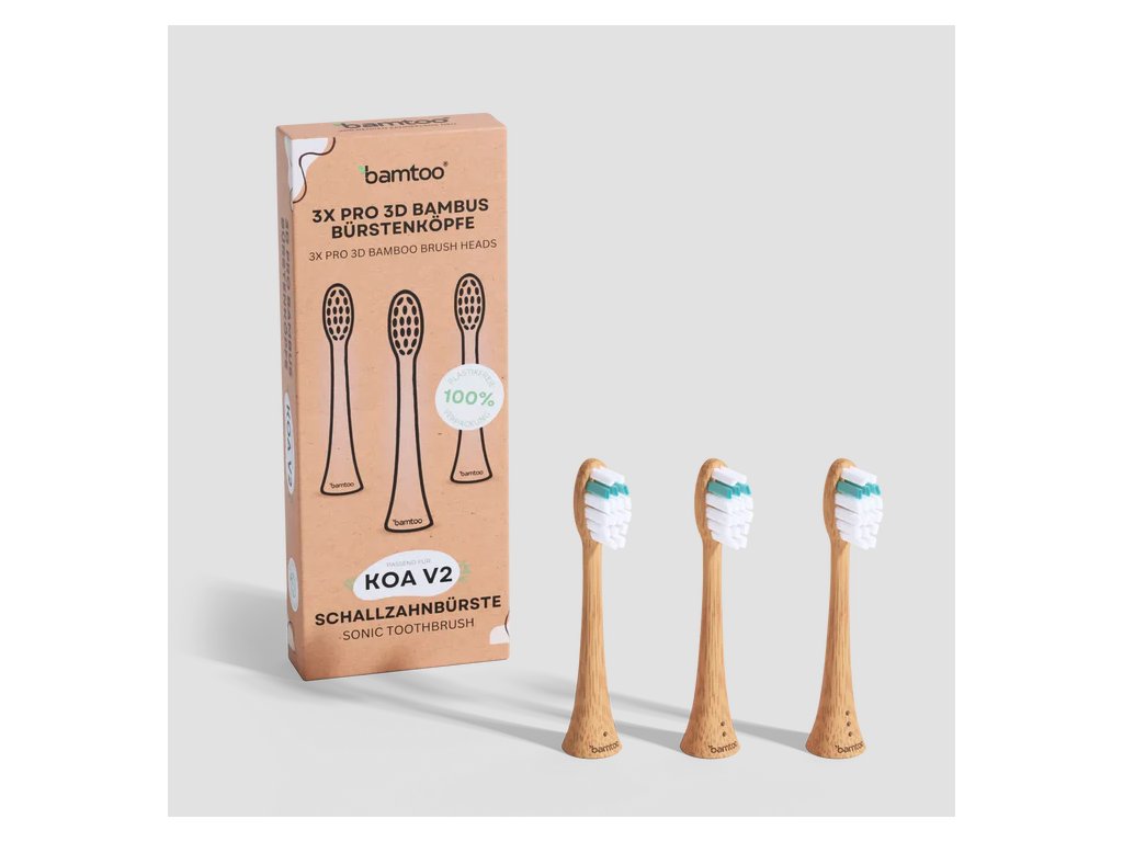 Bamtoo Bamboo jsou kartáčkové hlavice z bambusu, které jsou ekologicky udržitelné a určené pro sonický zubní kartáček KOA V2 od značky bamtoo. Balení obsahuje tři kusy.