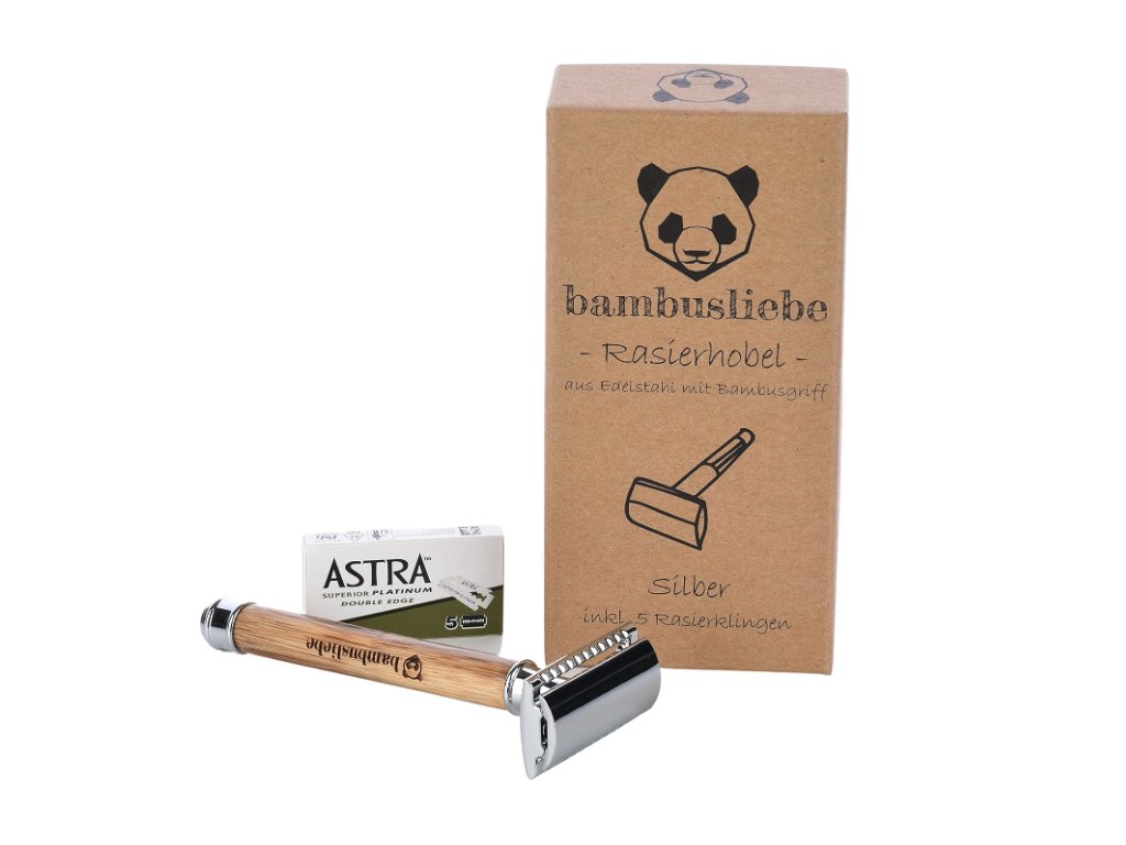 Bezpečnostní holicí strojek Bambusliebe se stříbrnou bambusovou rukojetí je vyroben z vysoce kvalitní nerezové oceli. Je určen pro jemné a spolehlivé holení a je ekologickou alternativou k plastovým holicím strojkům. Balení obsahuje také pět náhradních žiletek.