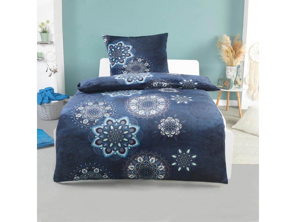 Zahalte se do tepla a luxusu s BaSaTex zimním plyšovým povlečením Cashmere Touch s nádherným designem modré mandaly! Toto povlečení je navrženo pro maximální komfort během chladnějších nocí a promění vaši ložnici v oázu klidu.
