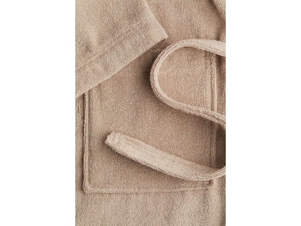 Konstrukce županu zahrnuje praktické detaily, jako jsou dvě prostorné kapsy na přední straně pro uložení drobností a variabilní pásek, kterým lze oděv snadno přizpůsobit postavě. Jednobarevné provedení v moderním odstínu světle šedohnědé působí velmi klidně a nadčasově. Župan je vyroben z odolného materiálu, který snese časté praní při vysokých teplotách a dlouhodobě si zachovává svůj tvar i užitné vlastnosti.