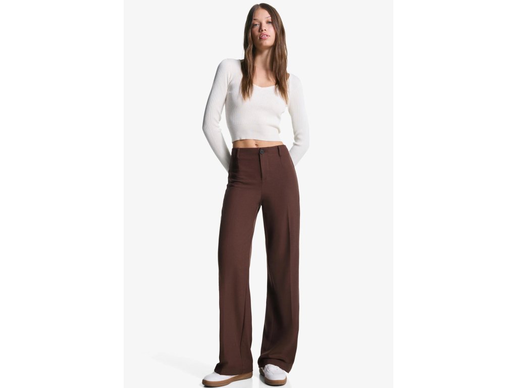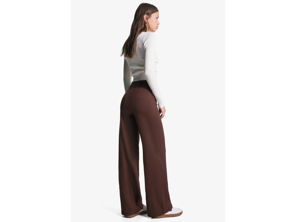 Bershka Wide-Leg Tailored kalhoty 36 – tmavě hnědé