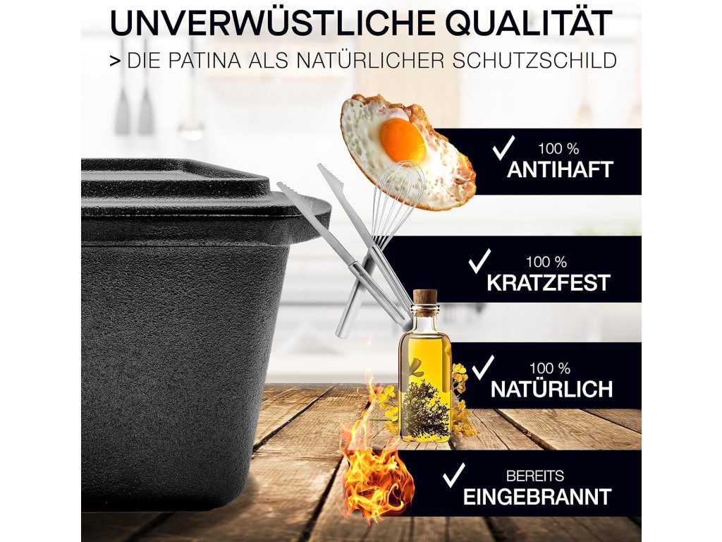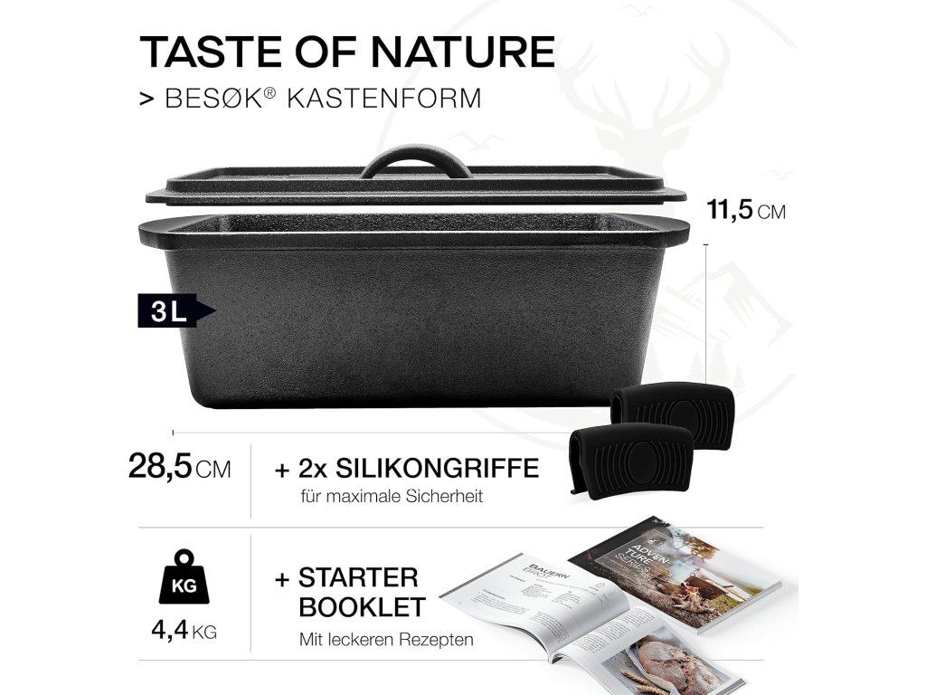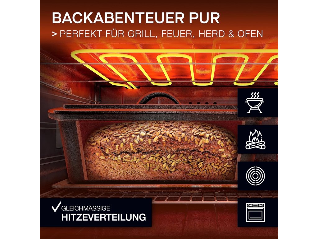 Litinová pečicí forma značky Besok promění domácí kuchyni v profesionální pekárnu. Litina jako materiál vyniká vynikající tepelnou vodivostí a schopností rovnoměrně distribuovat teplo po celém povrchu, což zabraňuje připálení a zajišťuje optimální podmínky pro vyběhnutí těsta. Forma je již z výroby vypálená (pre-seasoned), což vytváří přirozený nepřilnavý povrch a usnadňuje okamžité použití. Součástí sady je těsně přiléhající poklice, která uvnitř udržuje potřebnou vlhkost pro dosažení tradiční křupavé kůrky.