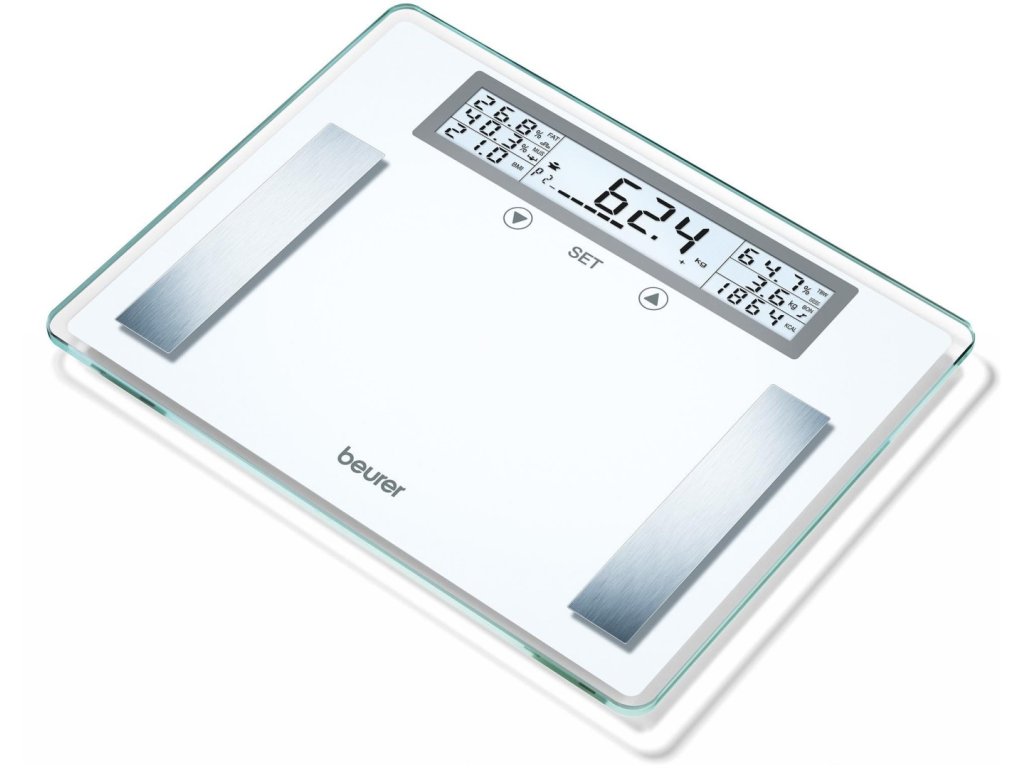 Beurer BG 51 XXL je digitální diagnostická váha s elegantní plochou z 8 mm bezpečnostního skla a LCD displejem s velkými číslicemi. Váha měří nejen hmotnost ale také tělesný tuk vodu svalovinu a kostní hmotu a počítá BMI a AMR. Má nastavitelných 5 úrovní aktivity a vysokou nosnost 200 kg.