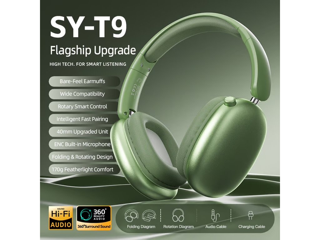 Bezdrátová Bluetooth sluchátka přes uši SY T9 khaki