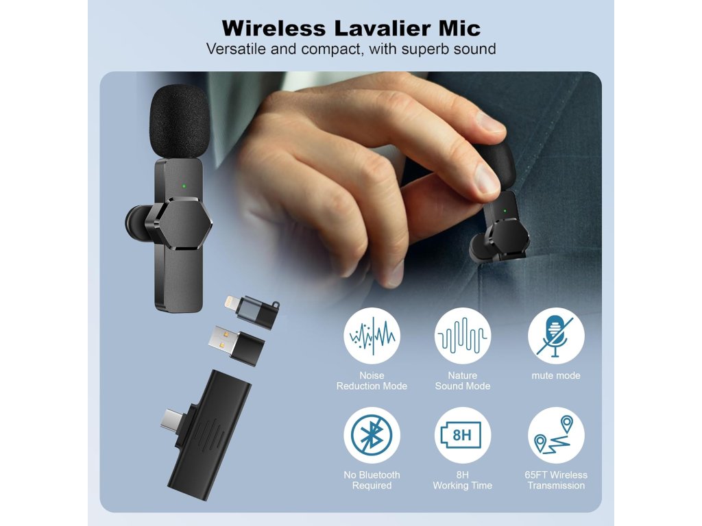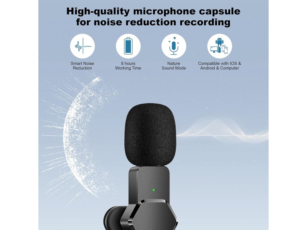 Tento bezdrátový klopový mikrofon je všestranným řešením pro záznam zvuku s vysokou kvalitou na různých zařízeních. Díky vylepšenému multifunkčnímu přijímači je kompatibilní s iPhony, iPady, telefony s Androidem i počítači, což vám umožní flexibilně reagovat na různé pracovní situace. Mikrofon nabízí dva režimy záznamu: režim s vysokou věrností původního zvuku a režim redukce šumu, který účinně filtruje okolní hluk a zároveň zachycuje čistý lidský hlas s nízkým zkreslením a latencí.