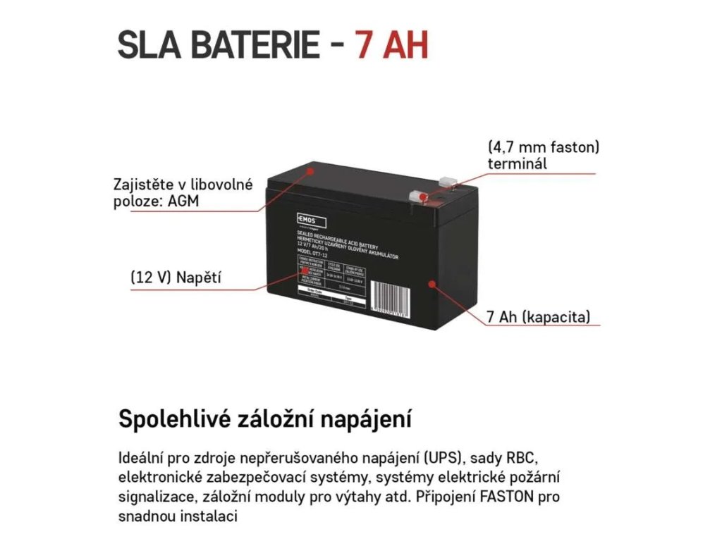 Akumulátor EMOS je primárně určen jako náhradní baterie pro záložní systémy s optimální životností 5 let při provozu v záložních aplikacích.
