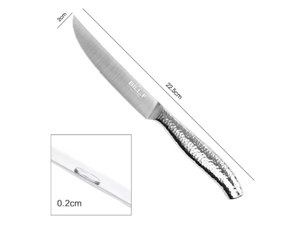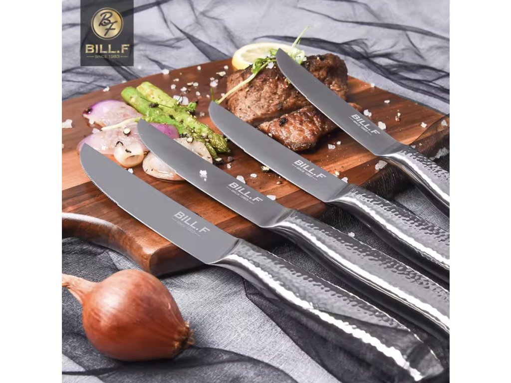 Tahle sada čtyř steakových nožů je super na krájení tvého oblíbeného jídla! Jsou vyrobené z nerezové oceli, takže jsou pevné a nereznout. Mají takový klasický westernový vzhled, takže se budou hodit na každou tabuli.