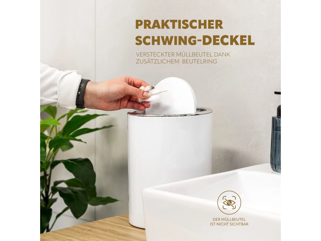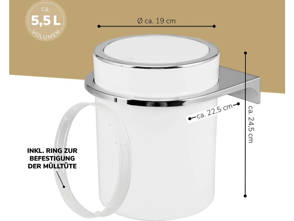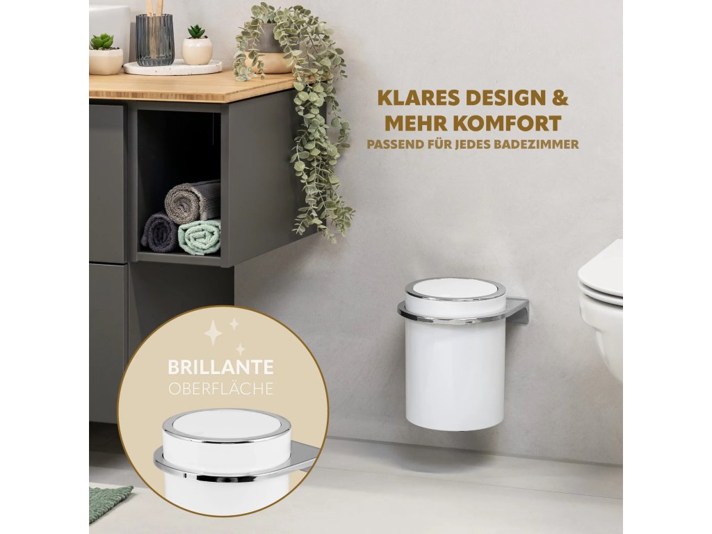 bremermann SAVONA kosmetický koš s nástěnným držákem - praktický a hygienický doplněk pro vaši koupelnu: Tento kvalitní kosmetický koš bremermann SAVONA je ideálním řešením pro každodenní drobné odpadky ve vaší koupelně, u toaletního stolku nebo i v kuchyni. S objemem 5,5 litru nabízí dostatek prostoru a díky svému kulatému designu a bílé barvě se snadno hodí do každého interiéru.