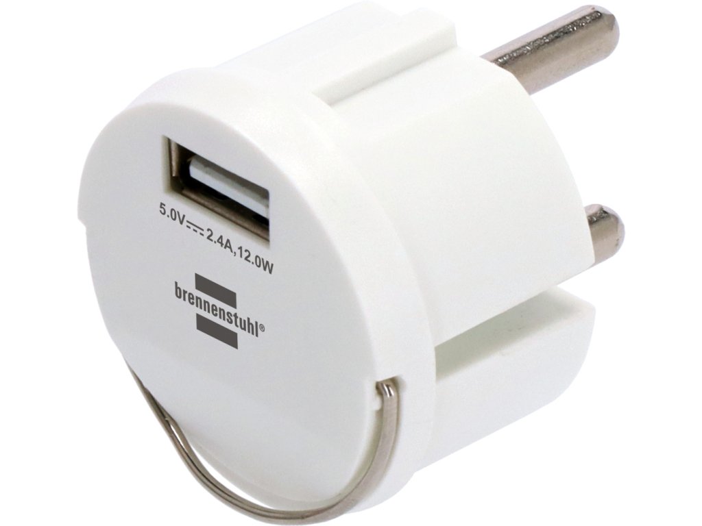 Bílý USB adaptér do zásuvky s výstupem 2,4 A. Ideální pro zásuvkové lišty a kabelové bubny s krytím IP44. Kompaktní a praktický pomocník pro nabíjení.