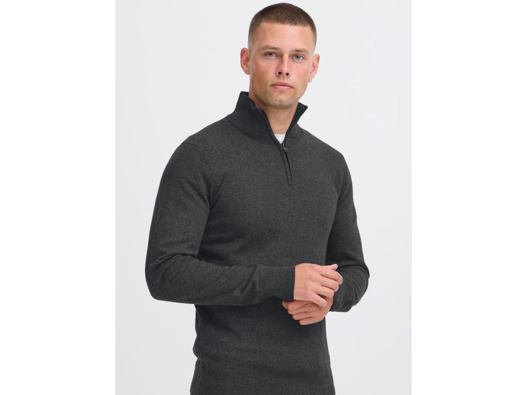 BLEND BHFilip pánský svetr s polovičním zipem šedý – velikost XL