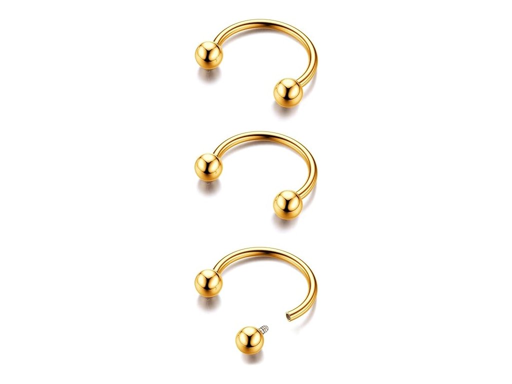 BodyBonita G23 Titanové podkovy do septu sada 3 kusy zlaté