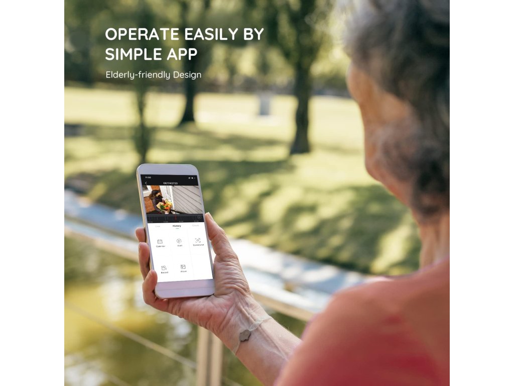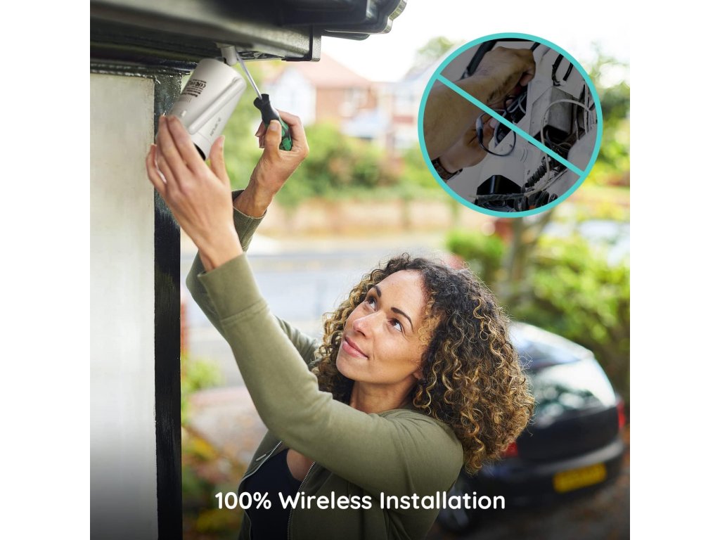 Je úplně bezdrátová a má velkou baterku, takže se nemusíš trápit s kabely. Snadno ji nainstaluješ a ovládáš přes aplikaci v mobilu. Můžeš se přes ni i bavit s lidmi, co jsou zrovna u ní, a má barevné noční vidění, takže i v noci uvidíš všechno jasně. Je voděodolná, takže jí nevadí déšť, a má široký úhel záběru, aby jí nic neuniklo. Videa si můžeš uložit na SD kartu nebo do cloudu.