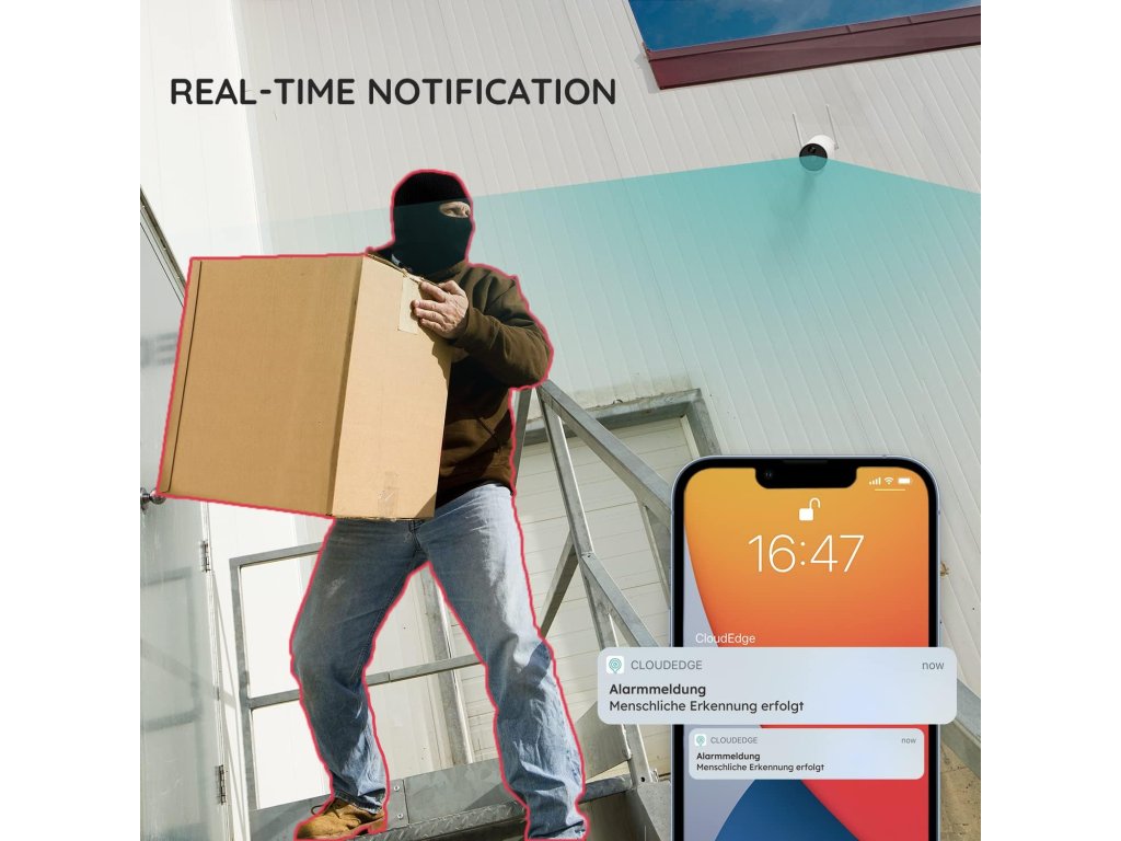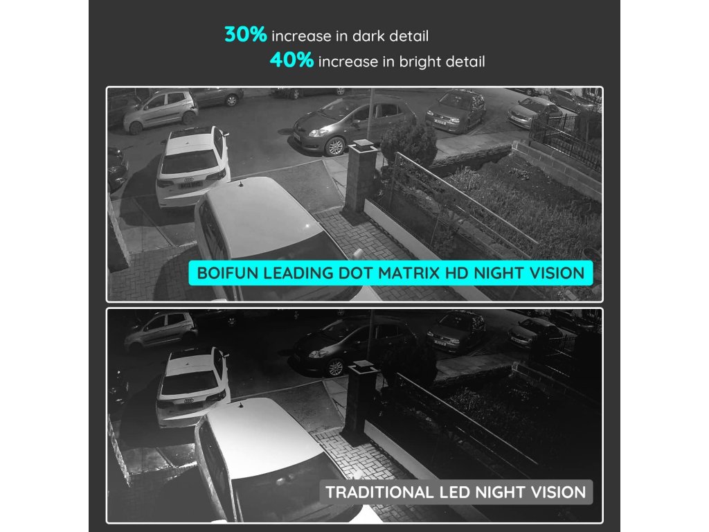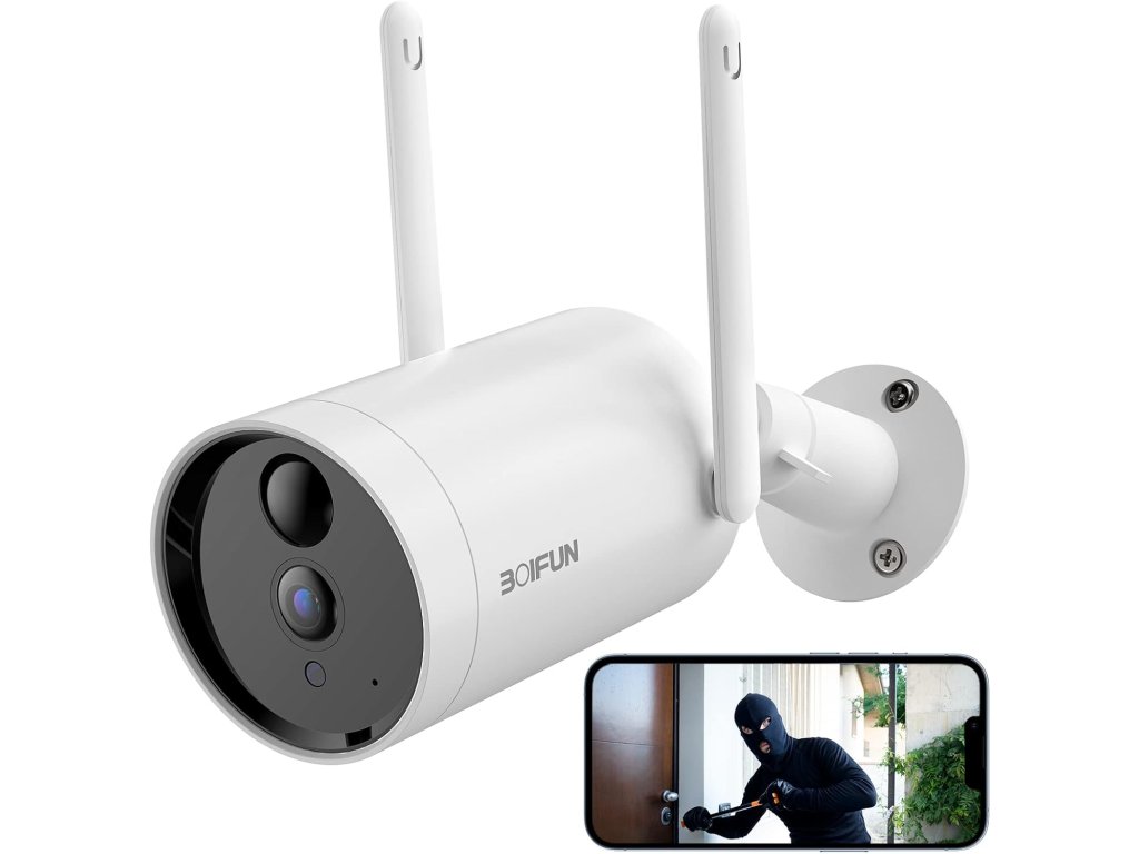 S bezdrátovou venkovní kamerou Boifun bude tvůj domov v bezpečí! Tahle kamera má super 2K rozlišení, takže na videích uvidíš fakt hodně detailů. Díky umělé inteligenci pozná, když se pohybuje člověk, a pošle ti upozornění do mobilu. A když se někomu nebude líbit, spustí hlasitou sirénu a rozsvítí světlo, aby ho odehnala.