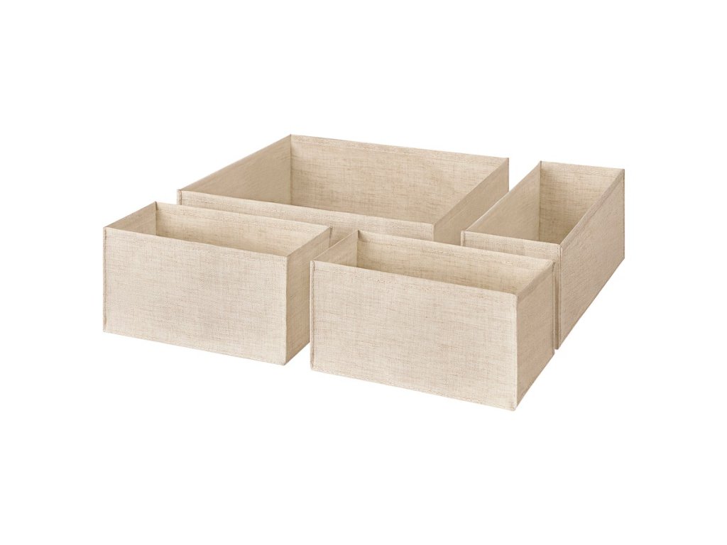 Sada 4 béžových organizérů do zásuvky BOLLÖSUND v různých velikostech pro přehledné uložení drobností, šperků a líčidel. Snadno složitelné a omyvatelné.