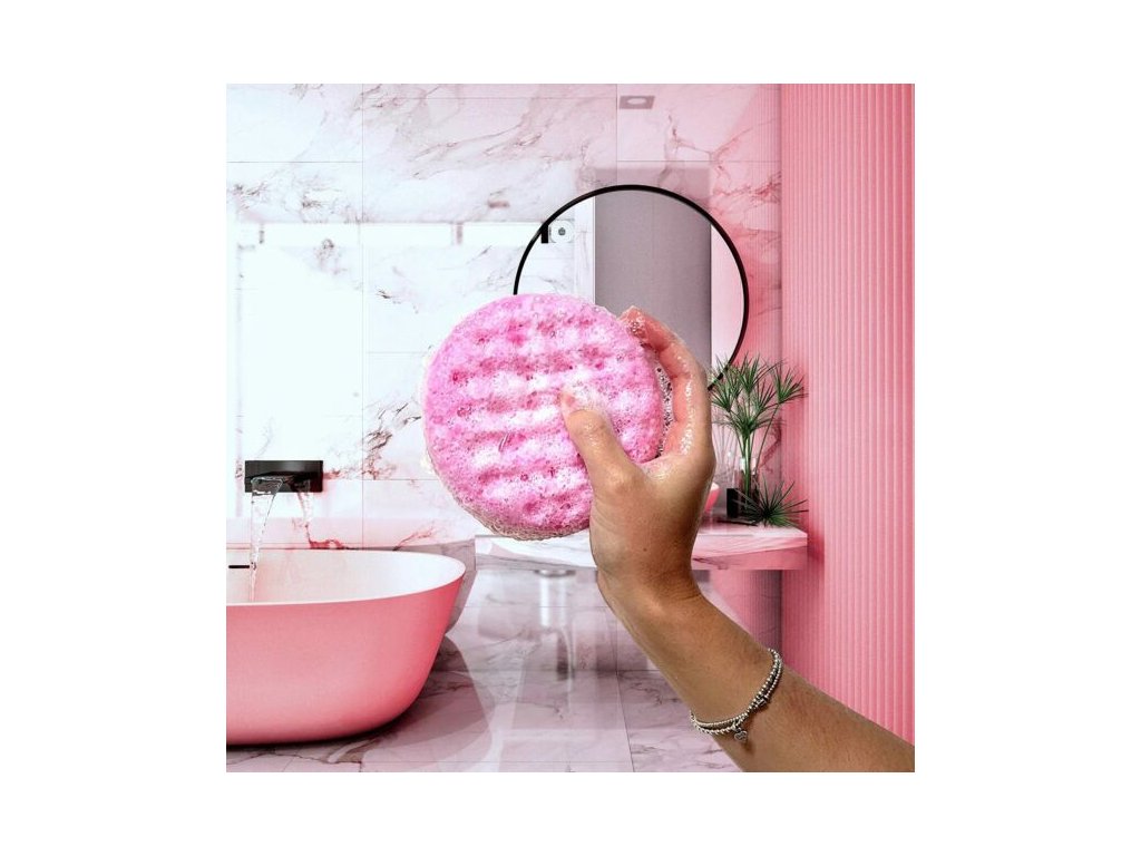 Růžová tělová houba je napuštěna čistými esenciálními oleji ze sladkého pomeranče a mandarinky, které povzbudí vaše smysly a dodají energii do nového dne. Jemná peelingová složka šetrně odstraní odumřelé kožní buňky, čímž zlepší prokrvení a připraví pokožku na lepší vstřebávání hydratačních složek.