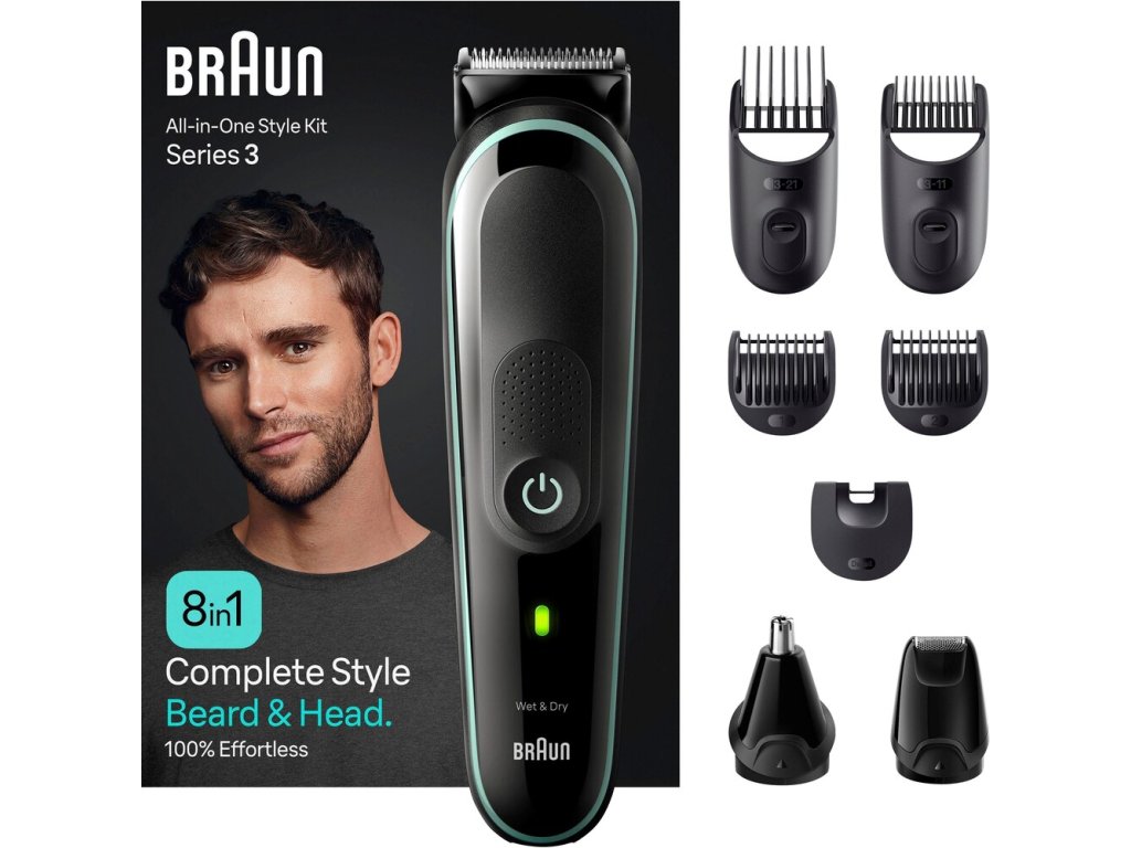 Braun All-in-one Style Kit S3 (MGK3441) - multifunkčním zastřihovačem Braun All-in-one Style Kit S3 získáte kompletní sadu pro úpravu vlasů, vousů a chloupků na těle. Model MGK3441 je akumulátorový a po plném nabití nabízí až 80 minut bezdrátového provozu, takže se nemusíte omezovat kabelem.