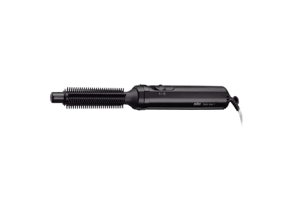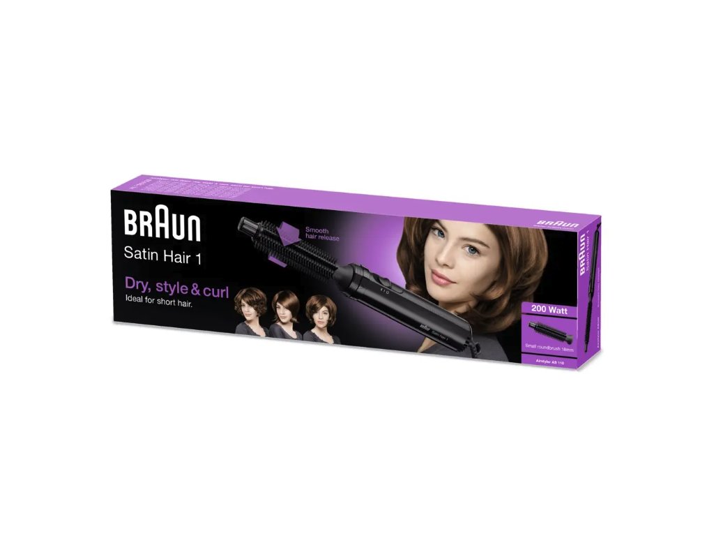 Horkovzdušná kulma Braun AS110 s příkonem 200 W. Nabízí 2 teplotní nastavení a je dodávána s jedním nástavcem.