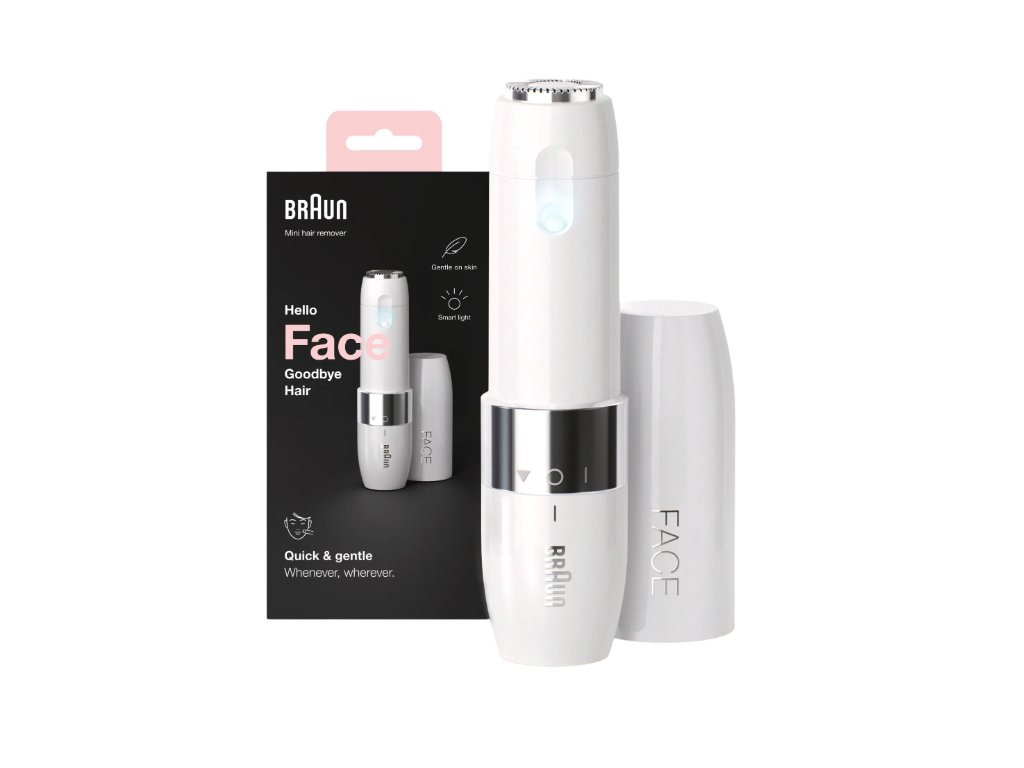 Braun Face Mini Hair Remover FS1000 je kompaktní elektrický odstraňovač chloupků na obličeji pro ženy. Zajišťuje hladké oholení, které usnadňuje nanášení make-upu.