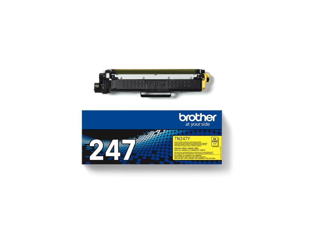 Originální toner Brother TN247Y v žluté (yellow) barvě. Výtěžnost je 2300 stran A4 při 5% pokrytí. Určeno pro barevné laserové tiskárny Brother řady DCP-L3xxx, HL-L3xxx a MFC-L3xxx.