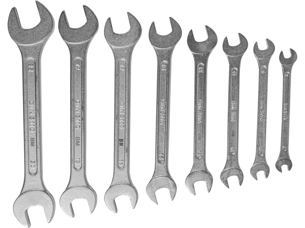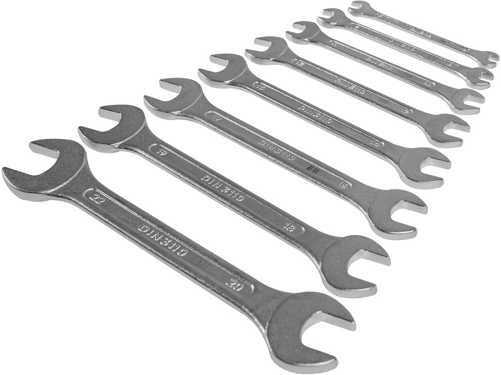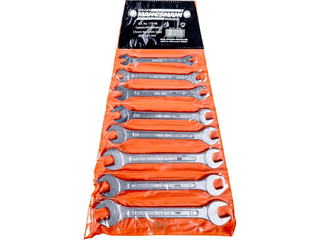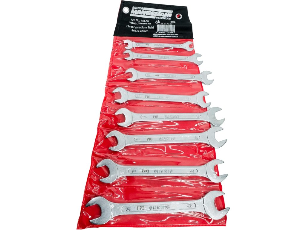 Tato 8dílná sada klíčů Brüder Mannesmann ve stříbrné barvě je vyrobena z vysoce kvalitní chrom vanadiové oceli. Nabízí rozsahy velikostí od 6 do 22 mm a je ideální pro různé mechanické práce.