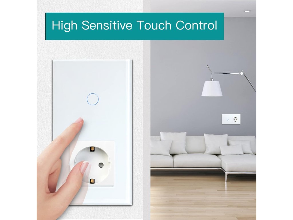 BSEED chytrá zásuvka Schuko 16A s WiFi dotykovým vypínačem (1cestný, bílý). Kompatibilní s Alexa a Google Home (vyžaduje nulový vodič).